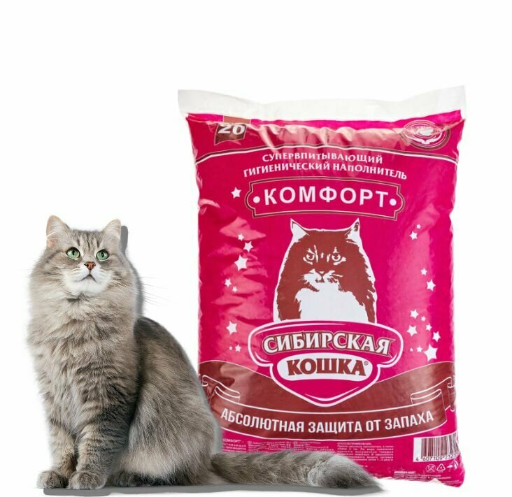 Сибирская кошка комфорт наполнитель впитывающий для туалета кошек (20 л)