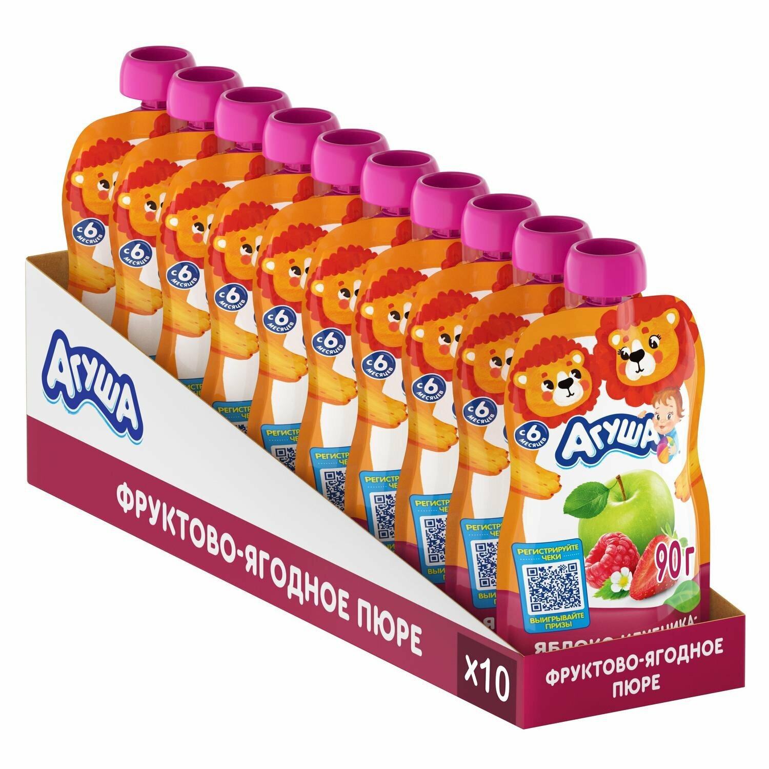 Спайка/Пюре Агуша яблоко-клубника-малина (с 6 месяцев) 90 г, 10 шт.