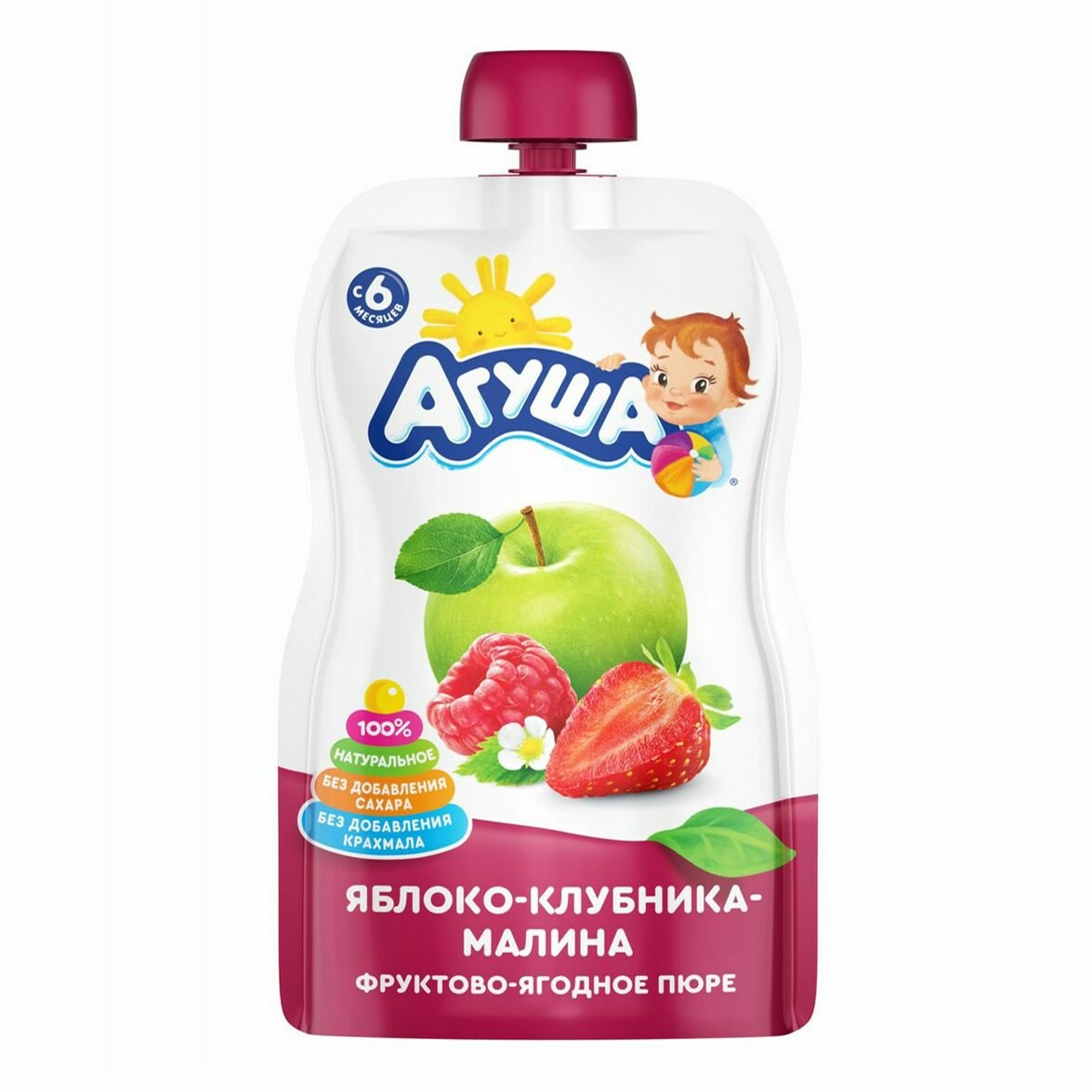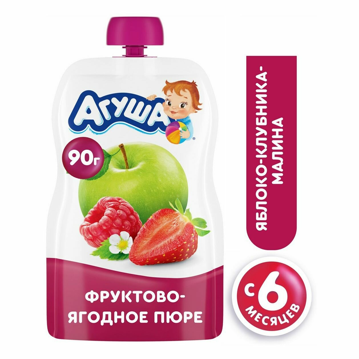 Пюре Агуша яблоко-клубника-малина (с 6 месяцев) 90 г/1шт
