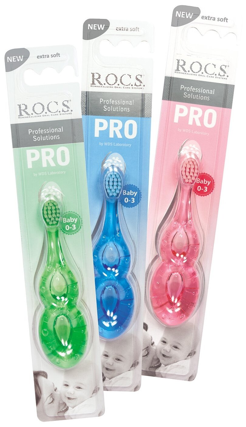 Зубная щетка R.O.C.S. Baby PRO 0-3 лет, в ассортименте, диаметр щетинок 1 мм