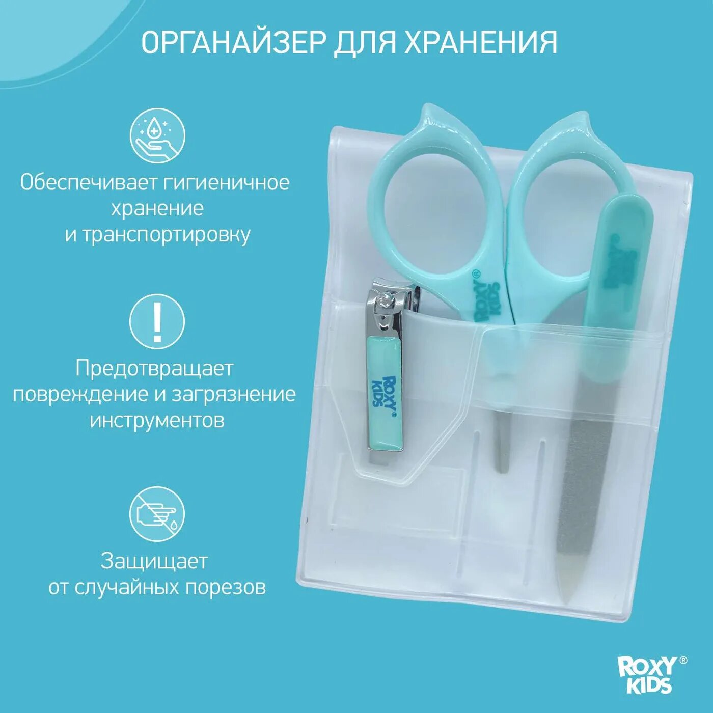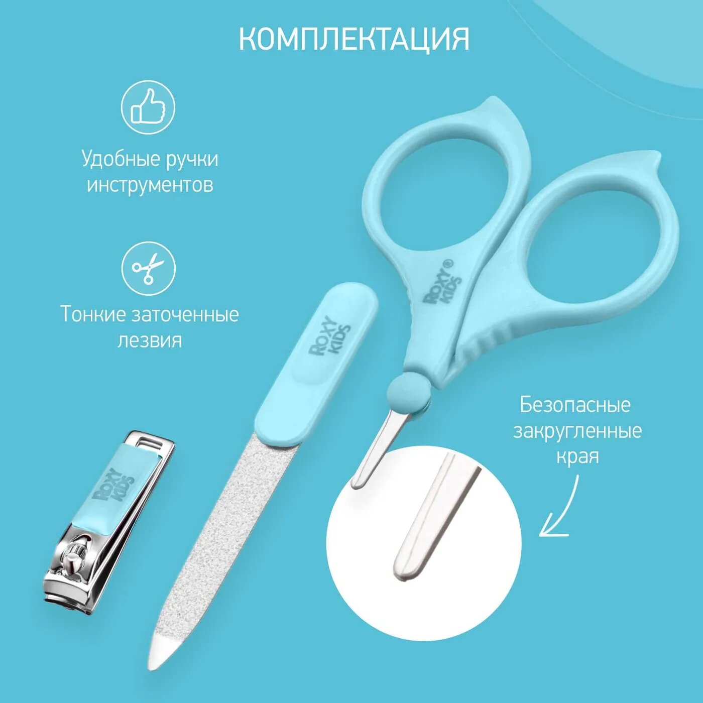 Маникюрный набор от ROXY-KIDS: ножницы, пилочка, кусачки 0+. Цвет голубой