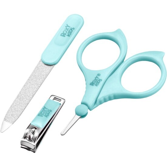 Маникюрный набор от ROXY-KIDS: ножницы, пилочка, кусачки. Цвет голубой