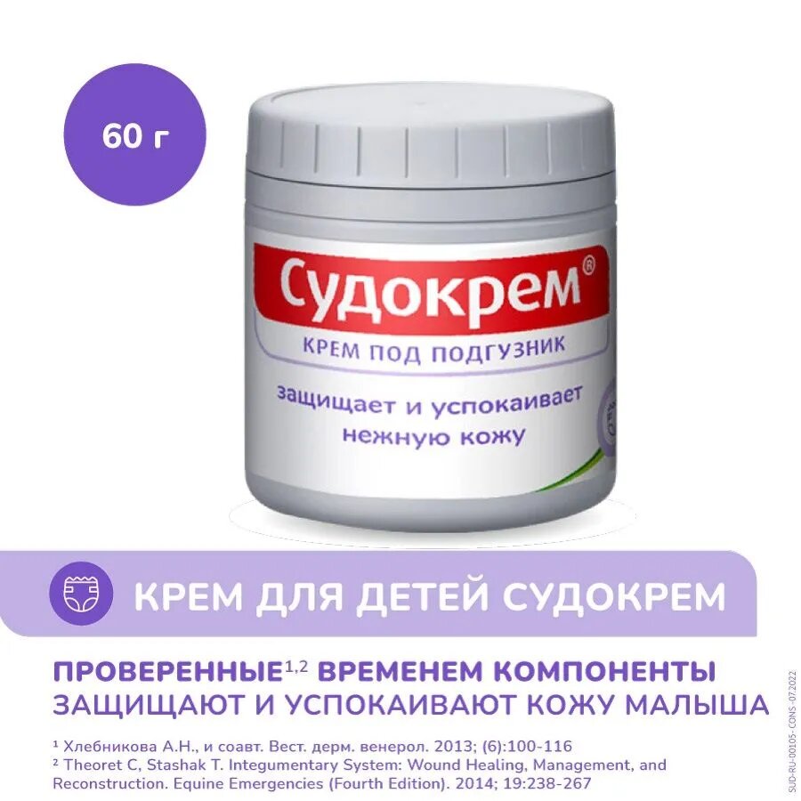 Судокрем защитный и успокаивающий под подгузник от опрелостей и покраснений для новорожденных 60 г