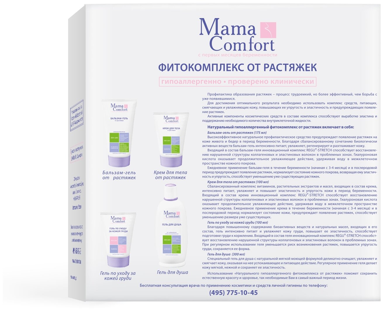 Фитокомплекс от растяжек Mama Com.fort, от растяжек с гиалуроновой кислотой, бальзам-гель, крем для тела, гель для душа, гель по уходу за кожей груди