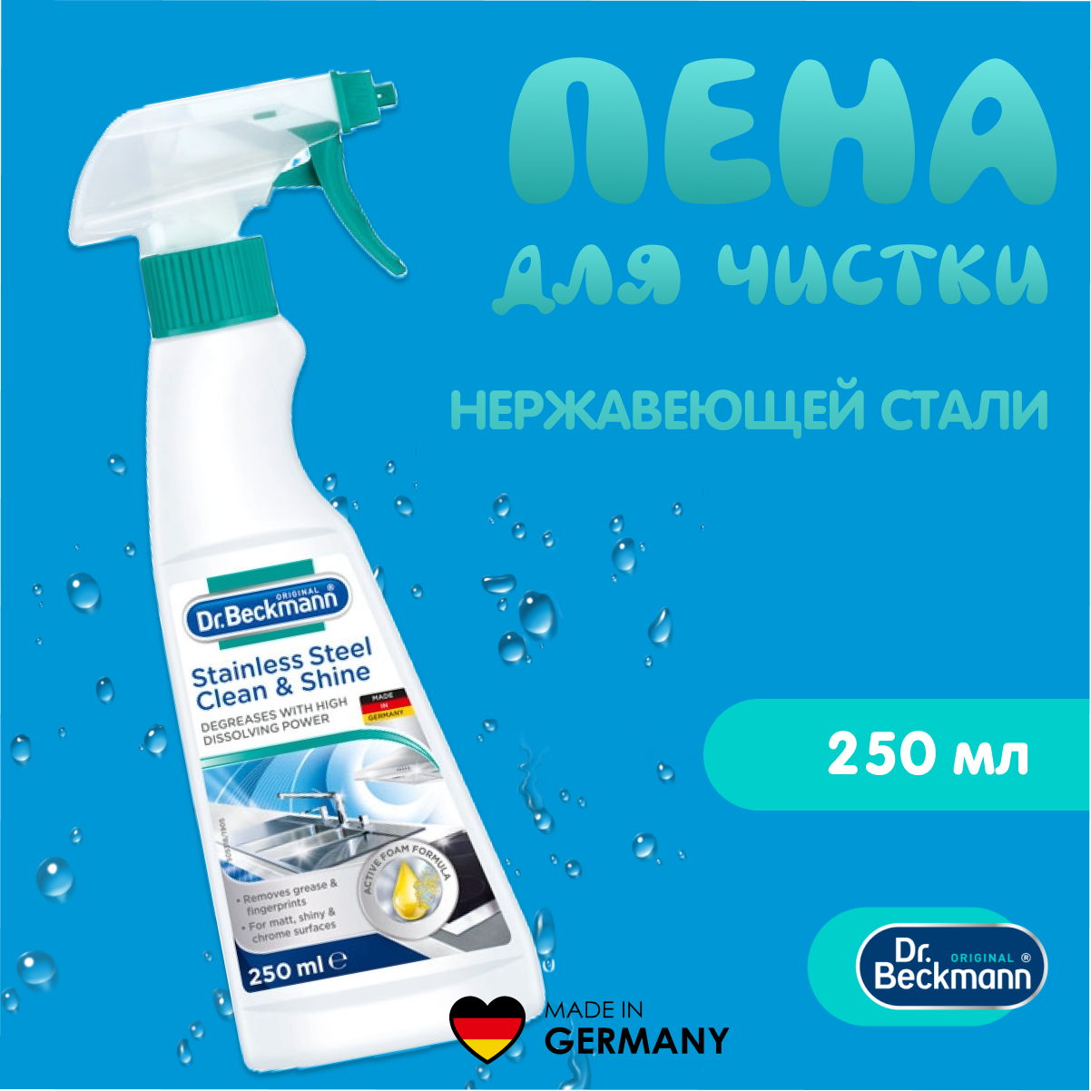 Dr.Beckmann Пена для чистки нержавеющей стали, 250 мл.