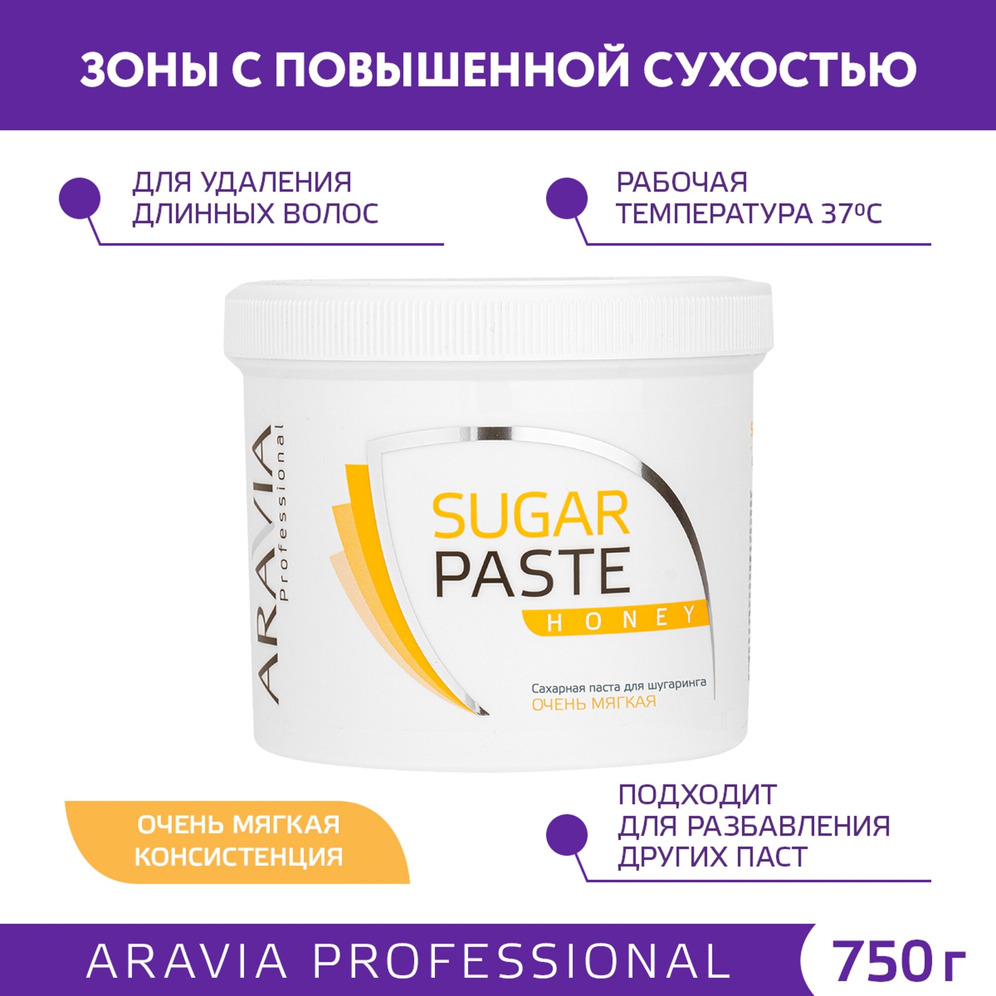 "ARAVIA Professional" Сахарная паста для депиляции "Медовая" очень мягкая, 750 гр.