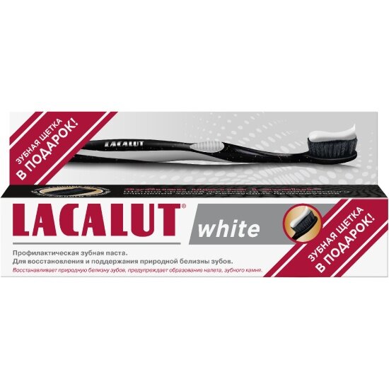 Купить Зубная паста Lacalut White 75 мл + Зубная щетка aktiv Model Club черная в подарок