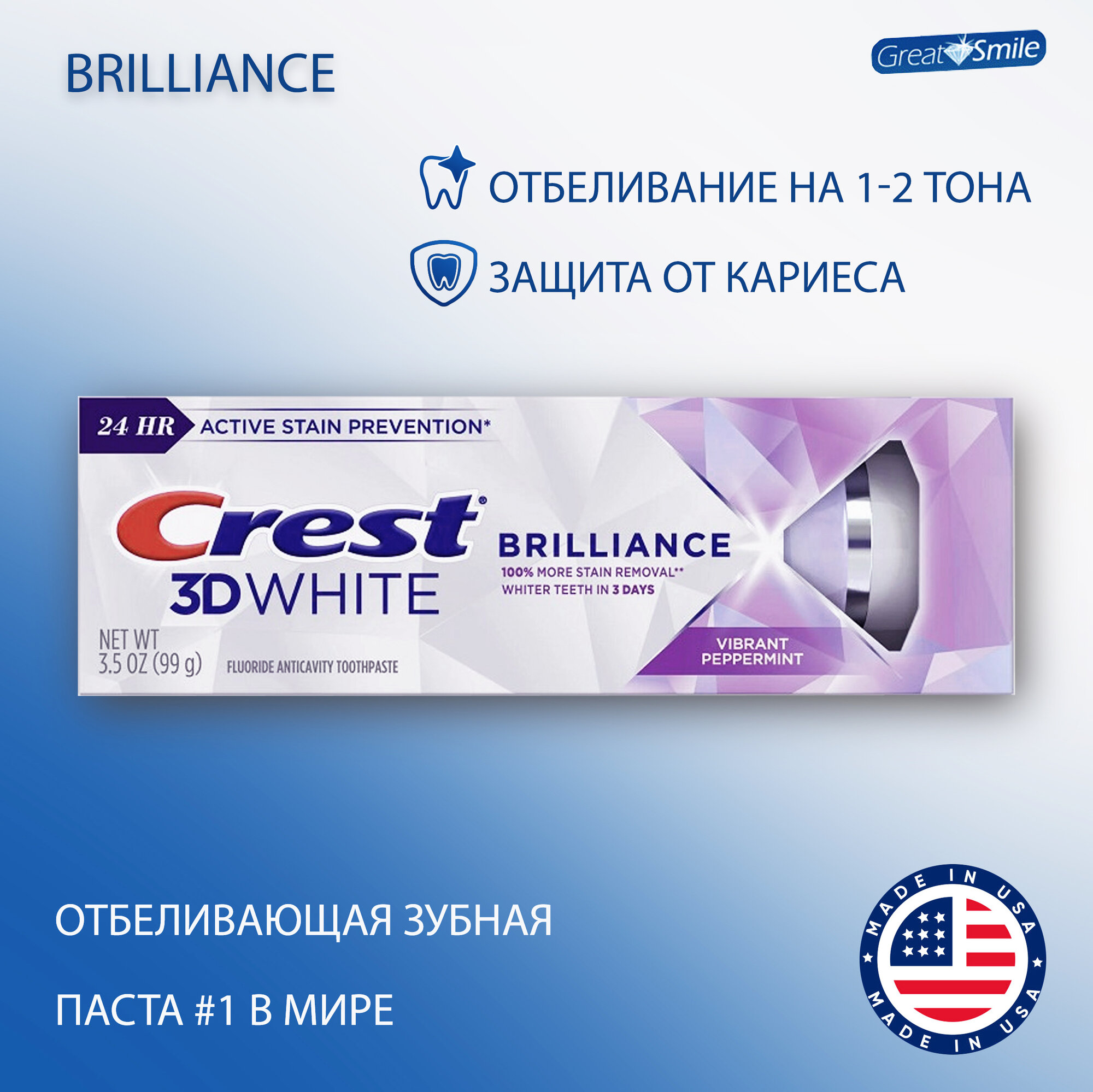 Отбеливающая зубная паста Crest 3D White Brilliance Teeth Whitening Toothpaste, Vibrant Peppermint, 99 г (3 штуки)