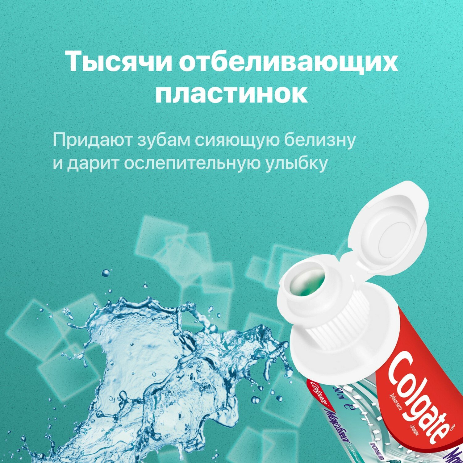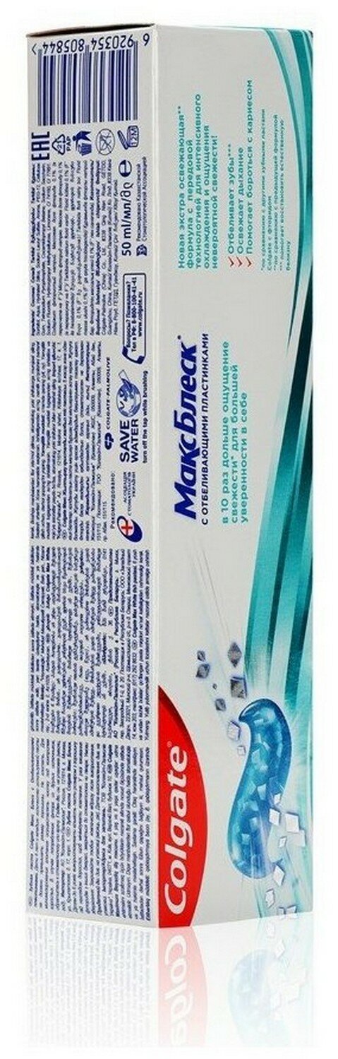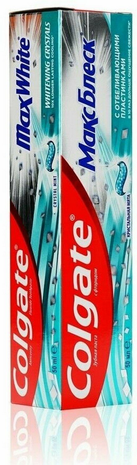 Зубная паста COLGATE Макс Блеск Кристальная мята с отбеливающими пластинками для свежего дыхания и отбеливания зубов, 50мл