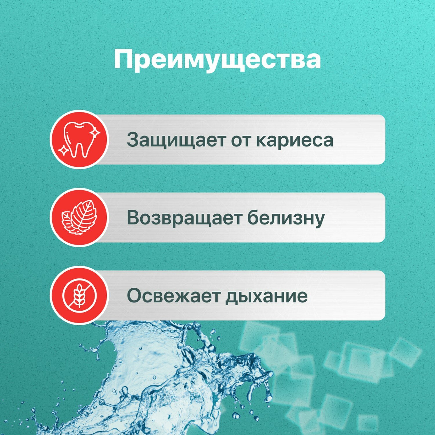 | Плюсы: | Приятный мятный вкус, удобный колпачок для открывания на крышке. |