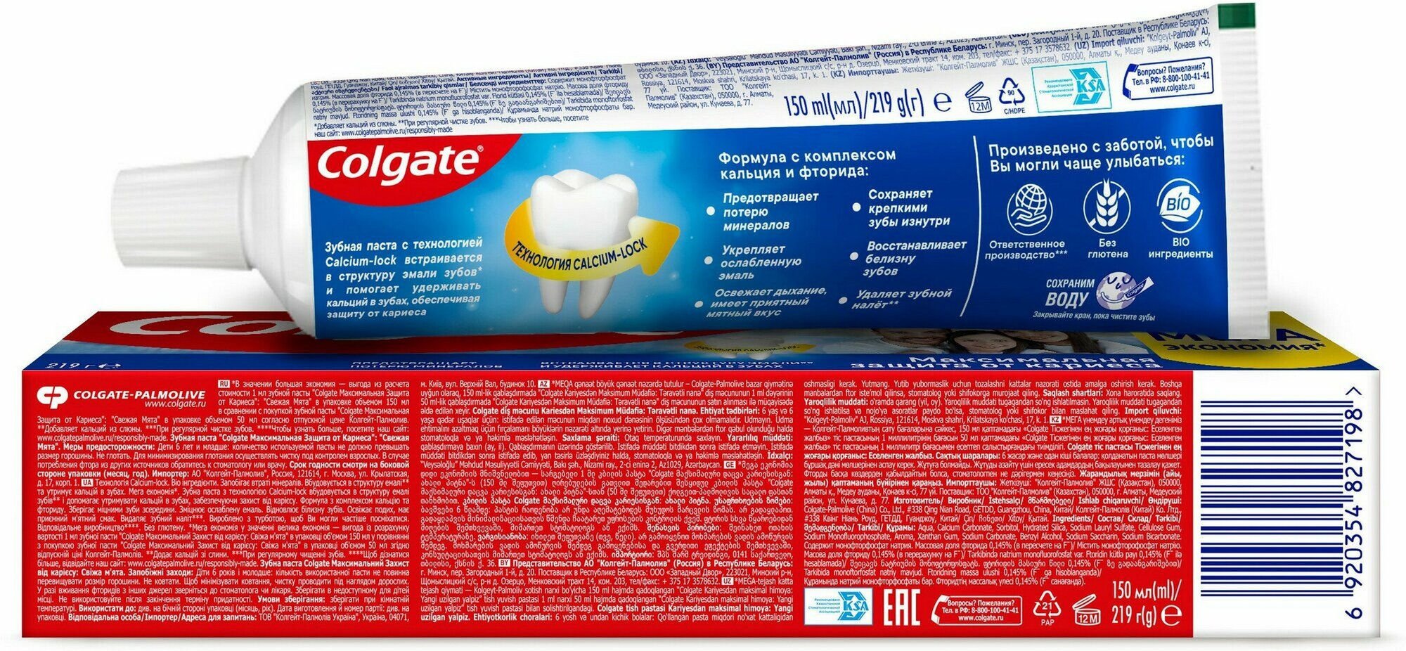 Colgate-Palmolive Colgate зубная паста Максимальная защита от кариеса Свежая мята 150 мл