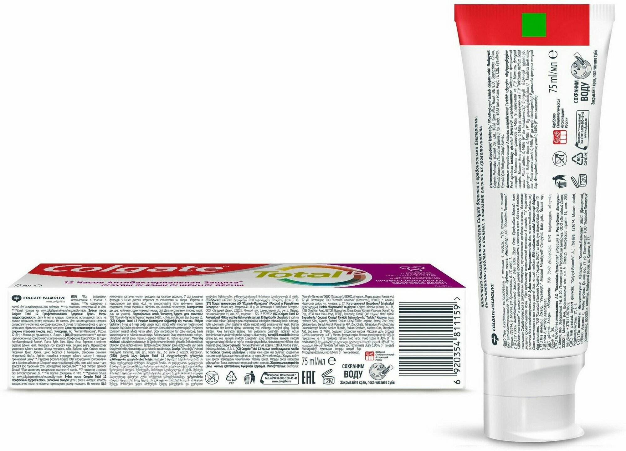 Colgate-Palmolive Colgate Total 12 зубная паста Профессиональная Здоровье Десен комплексная антибактериальная 75 мл