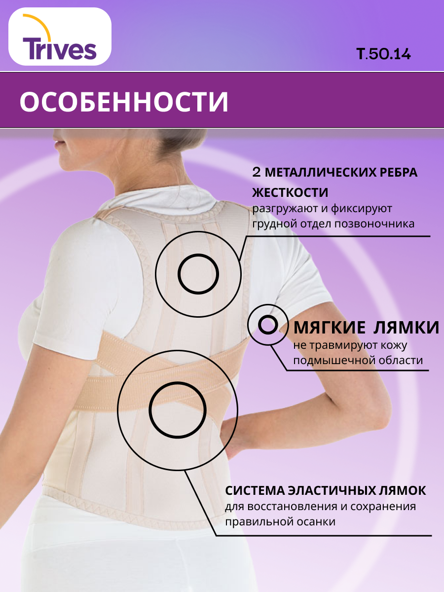 Корректор осанки Т.50.14 (Т-1774) Тривес для взрослых с металлическими ребрами жесткости
