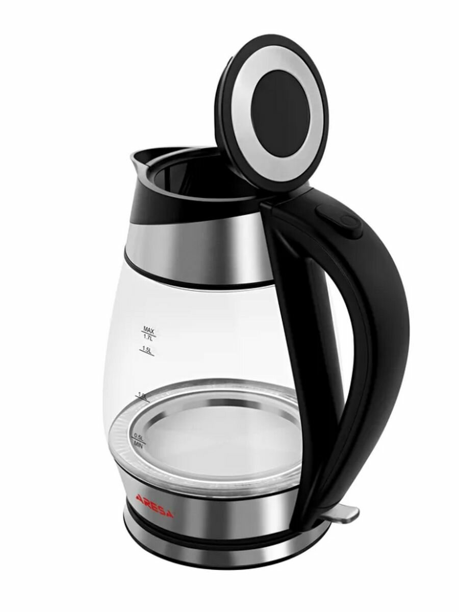 Купить Чайник электрический ARESA AR-3441, 1,7 л., стеклянная колба, серебристый, черный