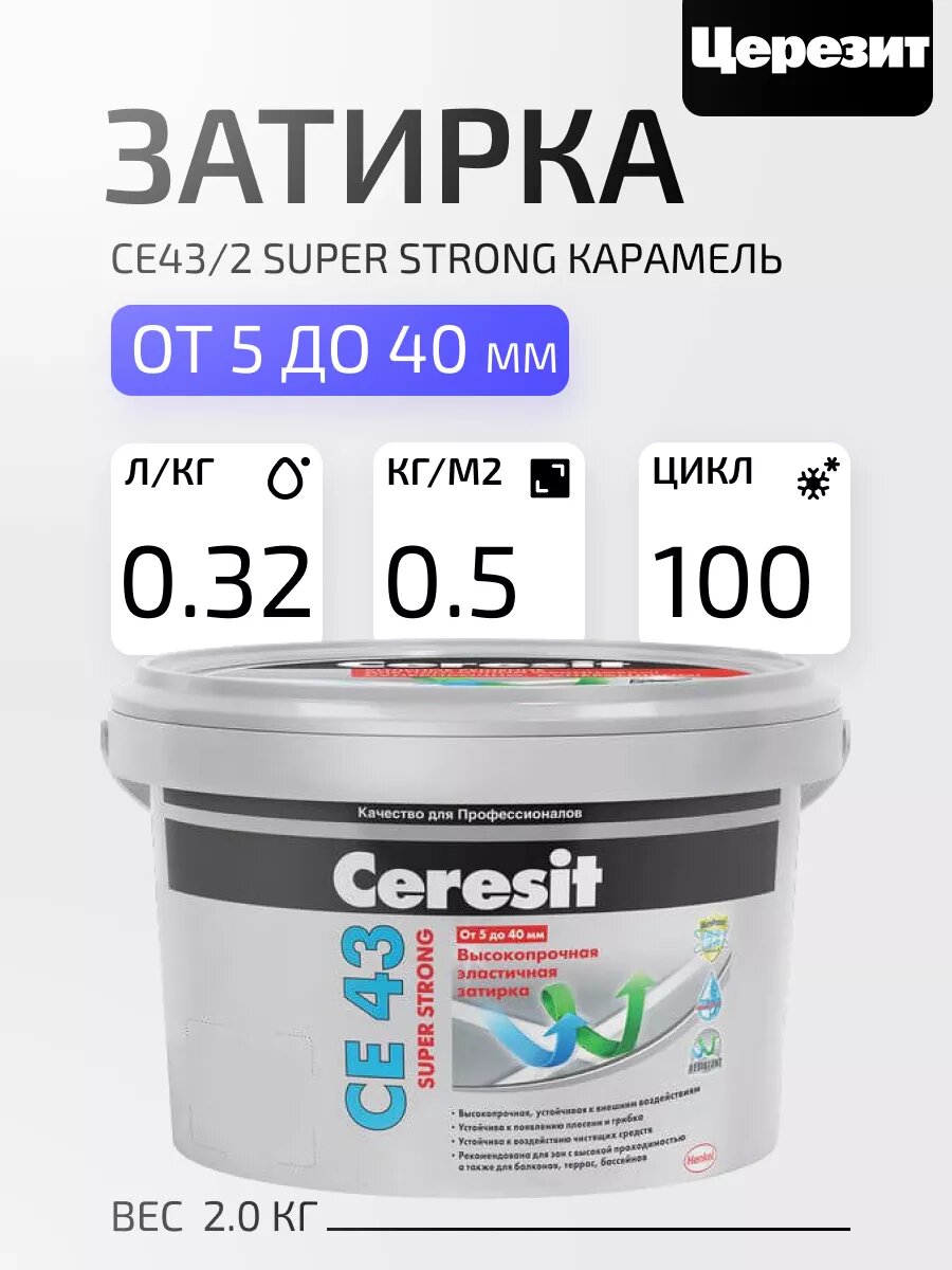 Купить Затирка цементная высокопрочная Церезит CE 43 Super Strong, цвет Карамель, 2 кг