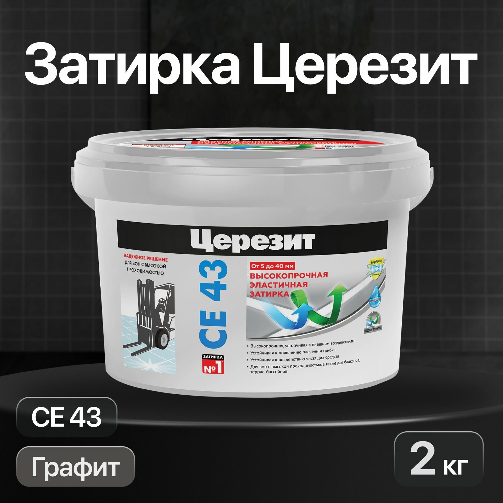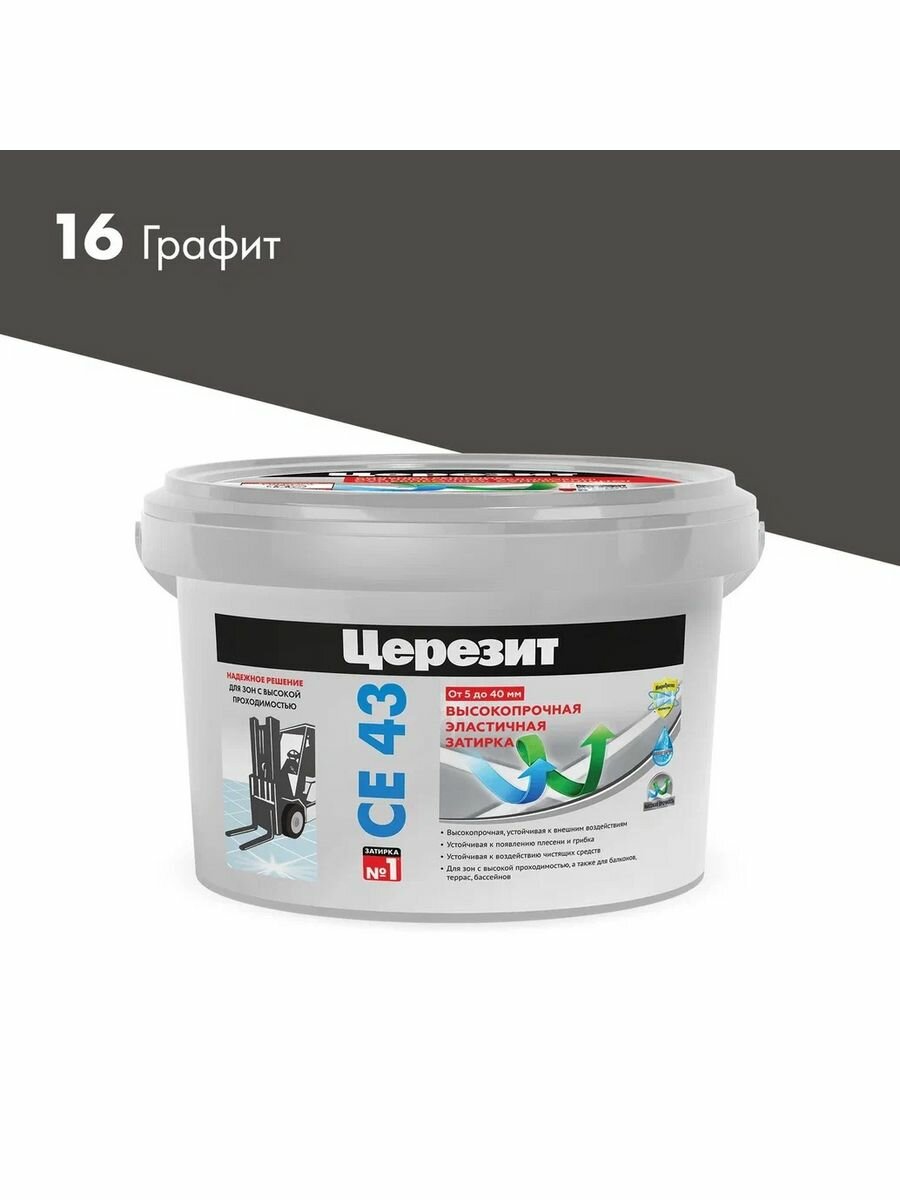 Купить Затирка цементная высокопрочная Церезит CE 43 Super Strong, цвет Графит, 2 кг