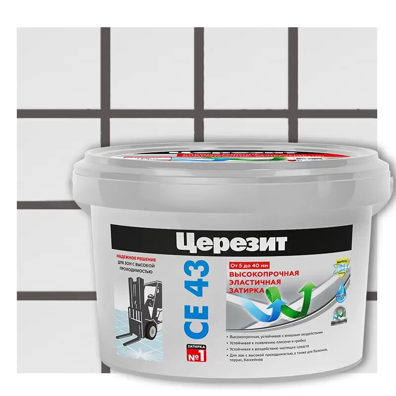 затирка для швов CERESIT СЕ 43 высокопрочная 5-40мм 2кг дымчато-белая, арт.1797597