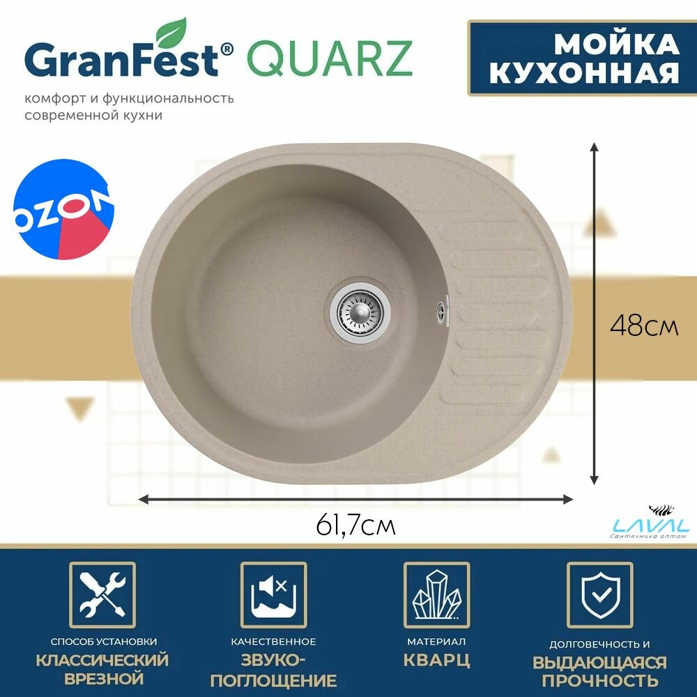 Мойка GranFest QUARZ 58 малый овал 620*480мм (бежевый)