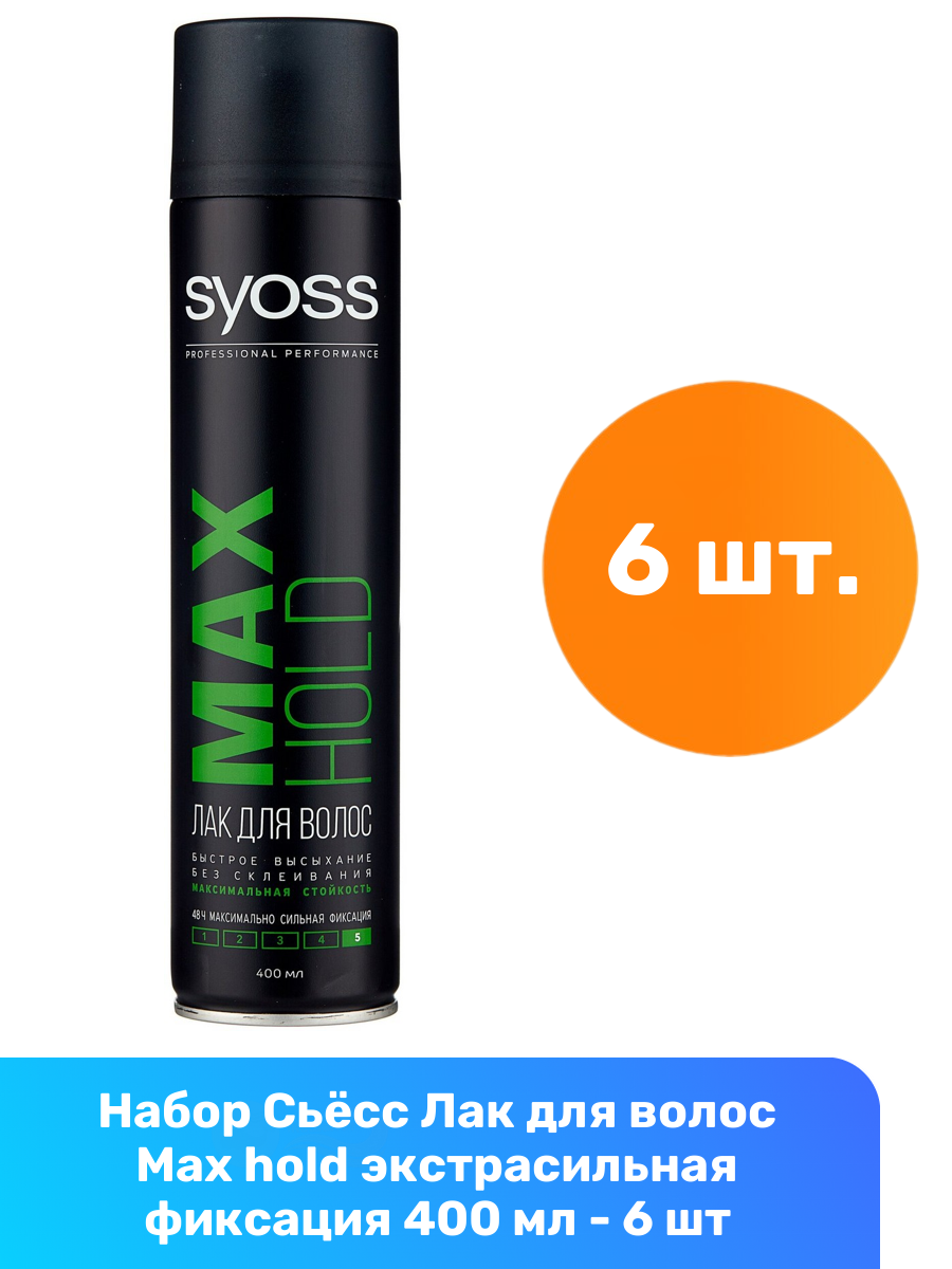 Купить Syoss Лак для волос Max Hold, максимально сильной фиксации, 400 мл, 6 шт