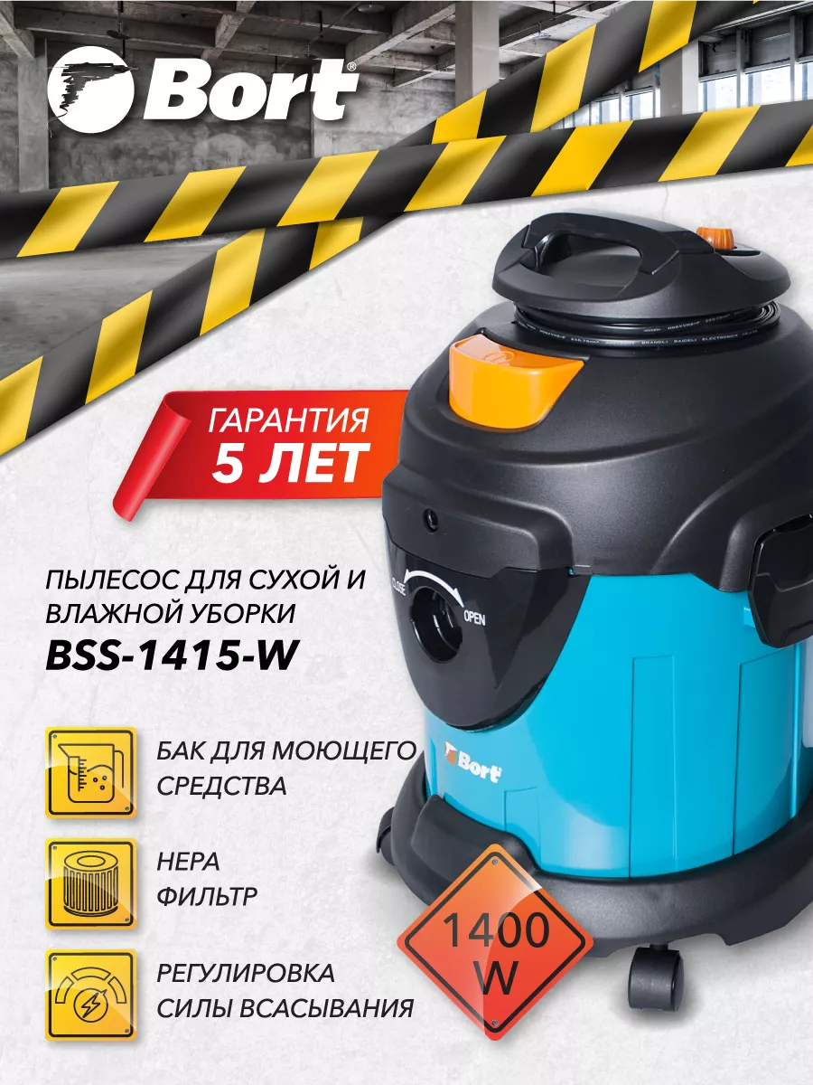 Строительный пылесос Bort Bss-1415-w 1400Вт (уборка: сухая/влажная) синий .