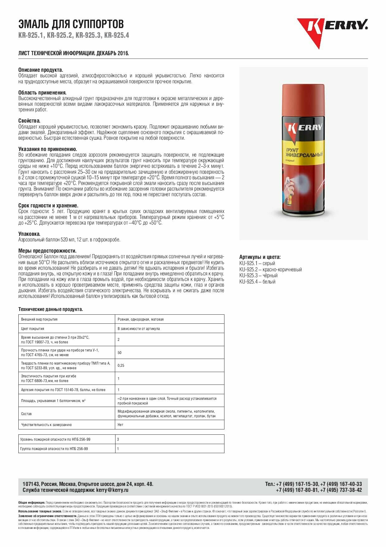 KERRY KR-925-1 (KR9251_KE) грунтовка серая, аэрозоль 520мл\