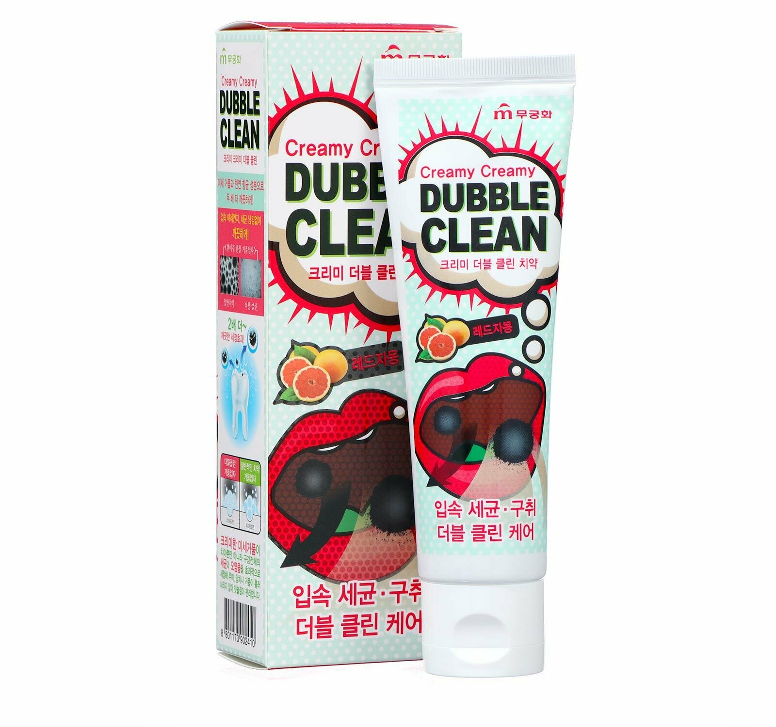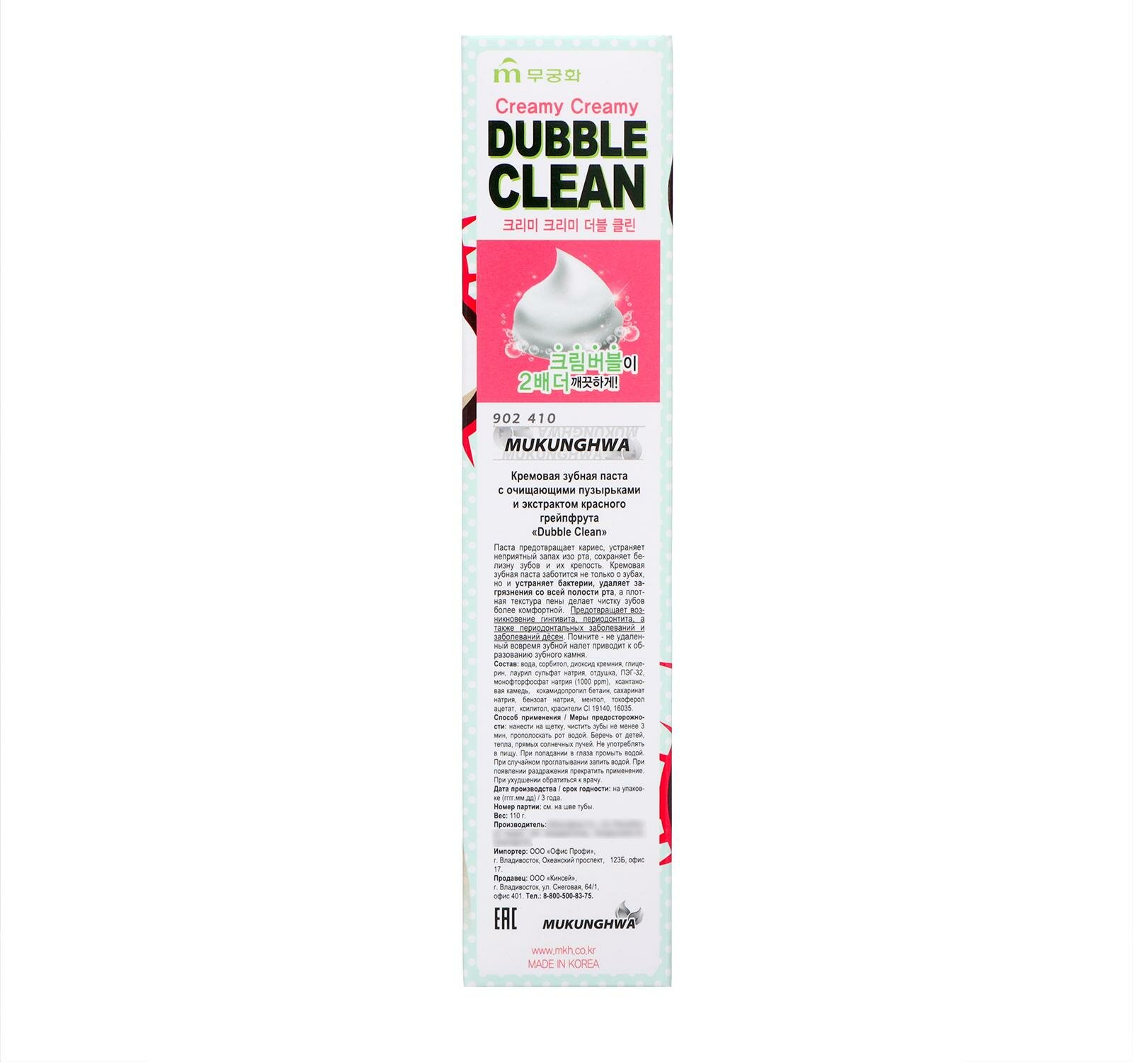 Зубная паста кремовая Dubble Clean с очищающими пузырьками и экстрактом красного грейпфрута / MUKUNGHWA / 110 г.