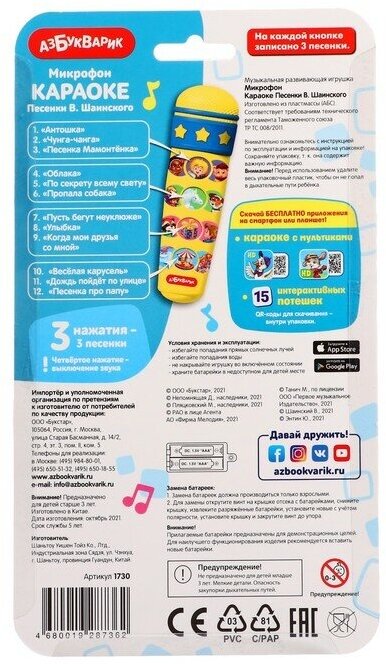 *Игрушка(Азбукварик) Микрофон_Караоке Чунга-чанга [обновленный] (12 веселых песенок)