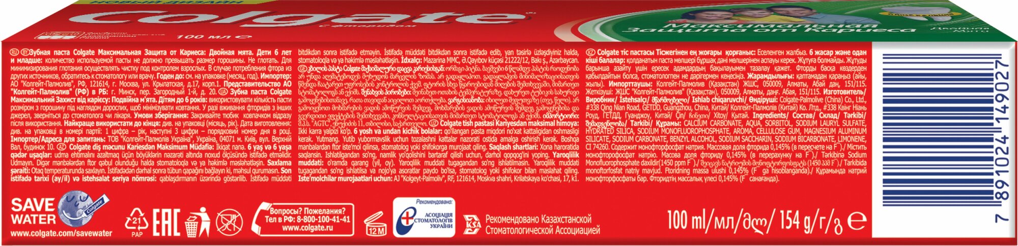 COLGATE Максимальная защита от кариеса Двойная мята зубная паста, 100 мл