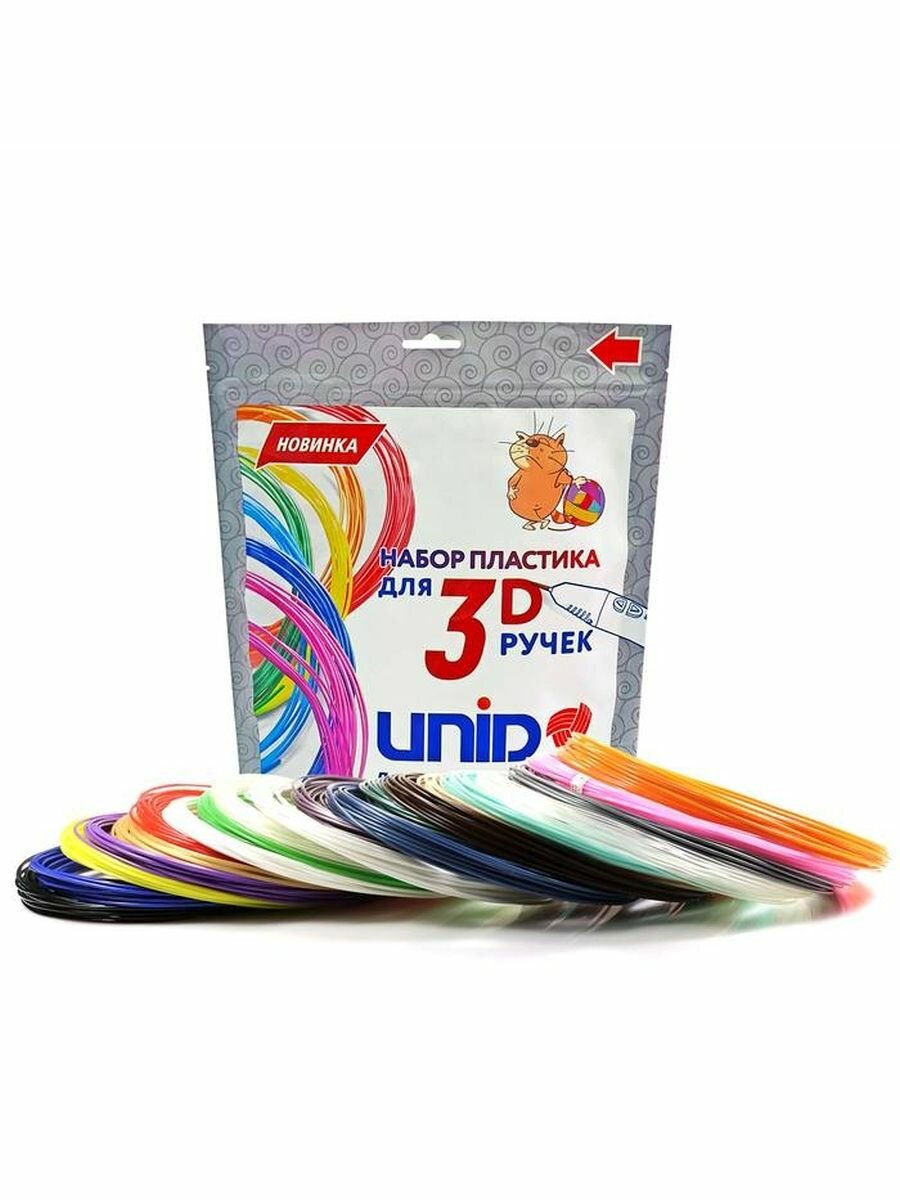 UNID Набор пластика для 3D ручек: PLA-15 (по 10м. 15 цветов в коробке)