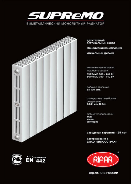 СохранитьРадиатор Rifar SUPReMO 500 9 секций, биметаллический интересное: