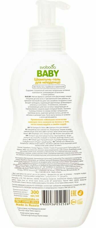 Свобода Baby Шампунь-гель для младенца, 300 мл интересное: