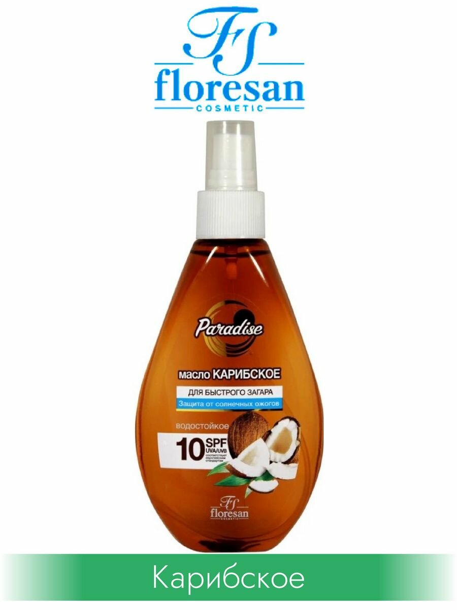 Floresan Масло для быстрого загара "Карибское", водостойкое, SPF 10, 160 мл