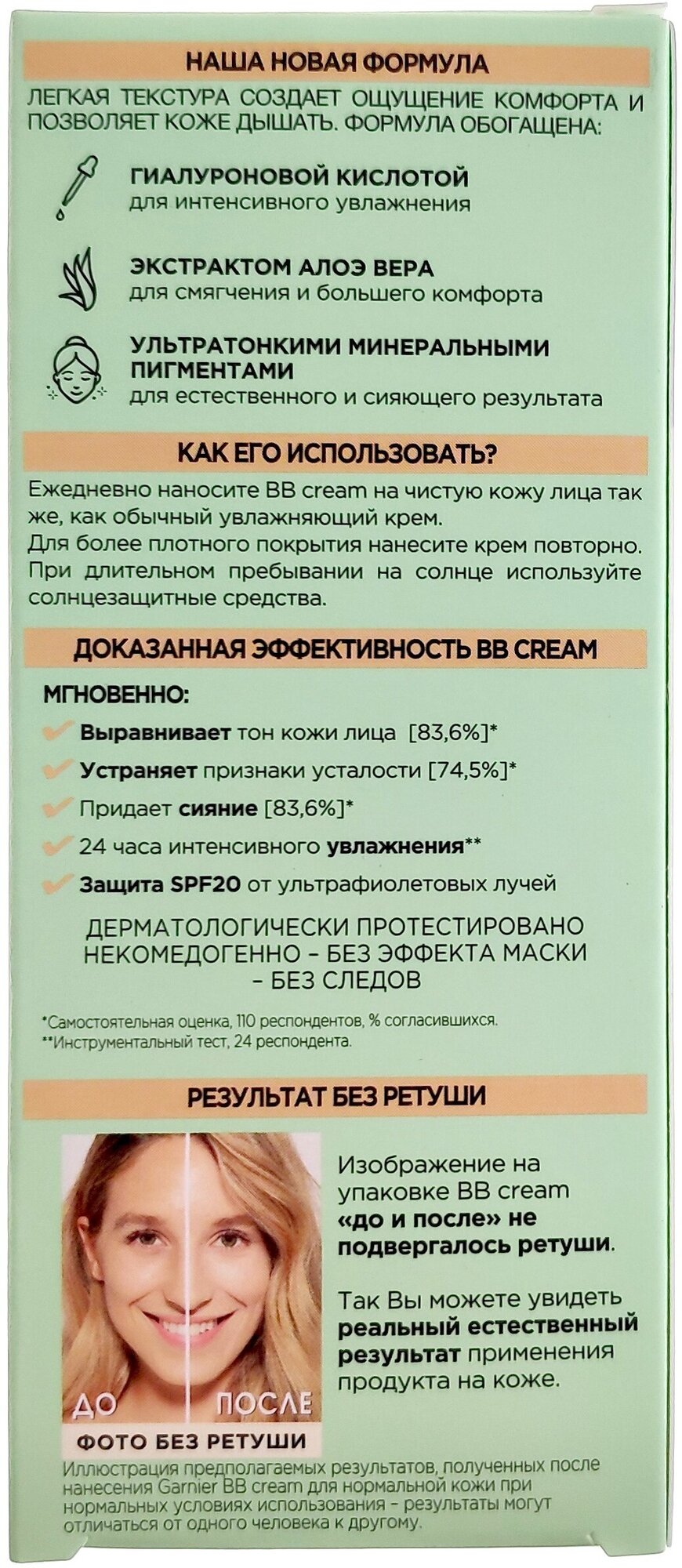 Garnier BB Крем Гиалуроновый Алоэ-уход 5-в-1, для нормальной кожи, увлажняющий, светло-бежевый, SPF20, 50 мл, Garnier