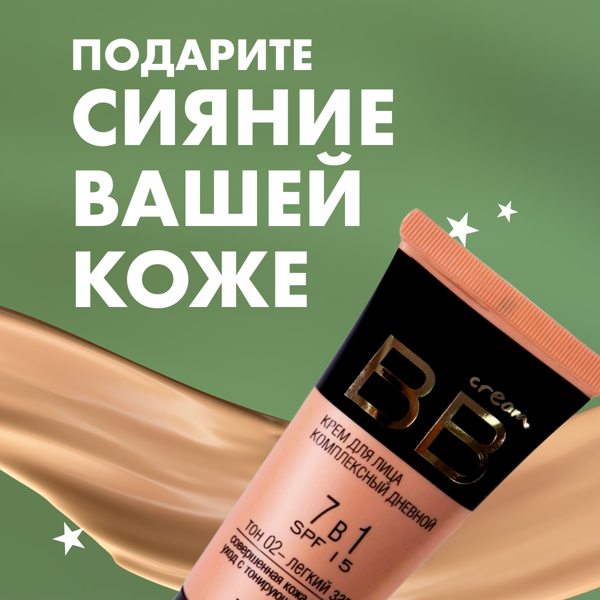 ВВ крем для лица комплексный дневной 7 в 1 SPF 15 тон 02 BB cream 30 мл