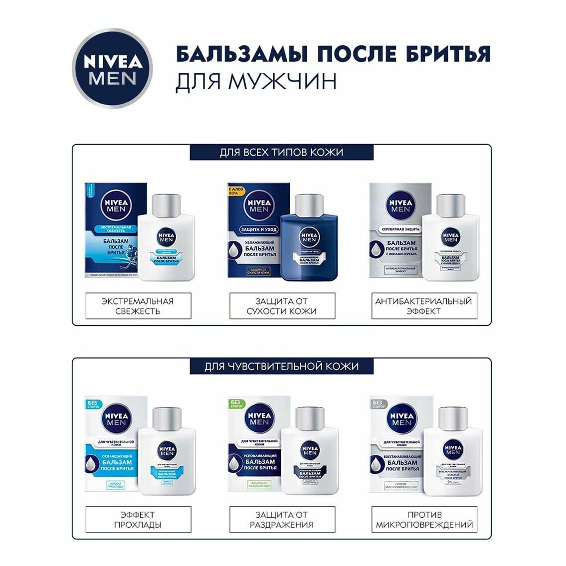 Комплект 6 шт. Бальзам после бритья Nivea Men успокаивающий для чувствительной кожи, 6 шт. по 100 мл.