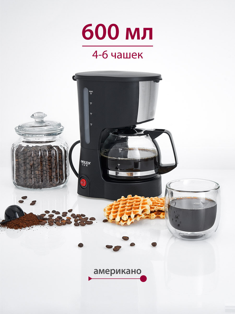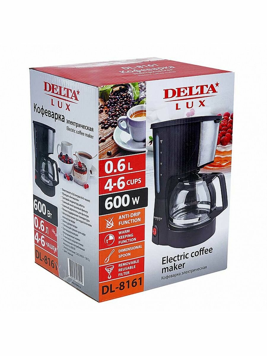 Кофеварка DELTA LUX DL-8161 черная : 600 Вт, 600 мл (6 чашек), антипролив