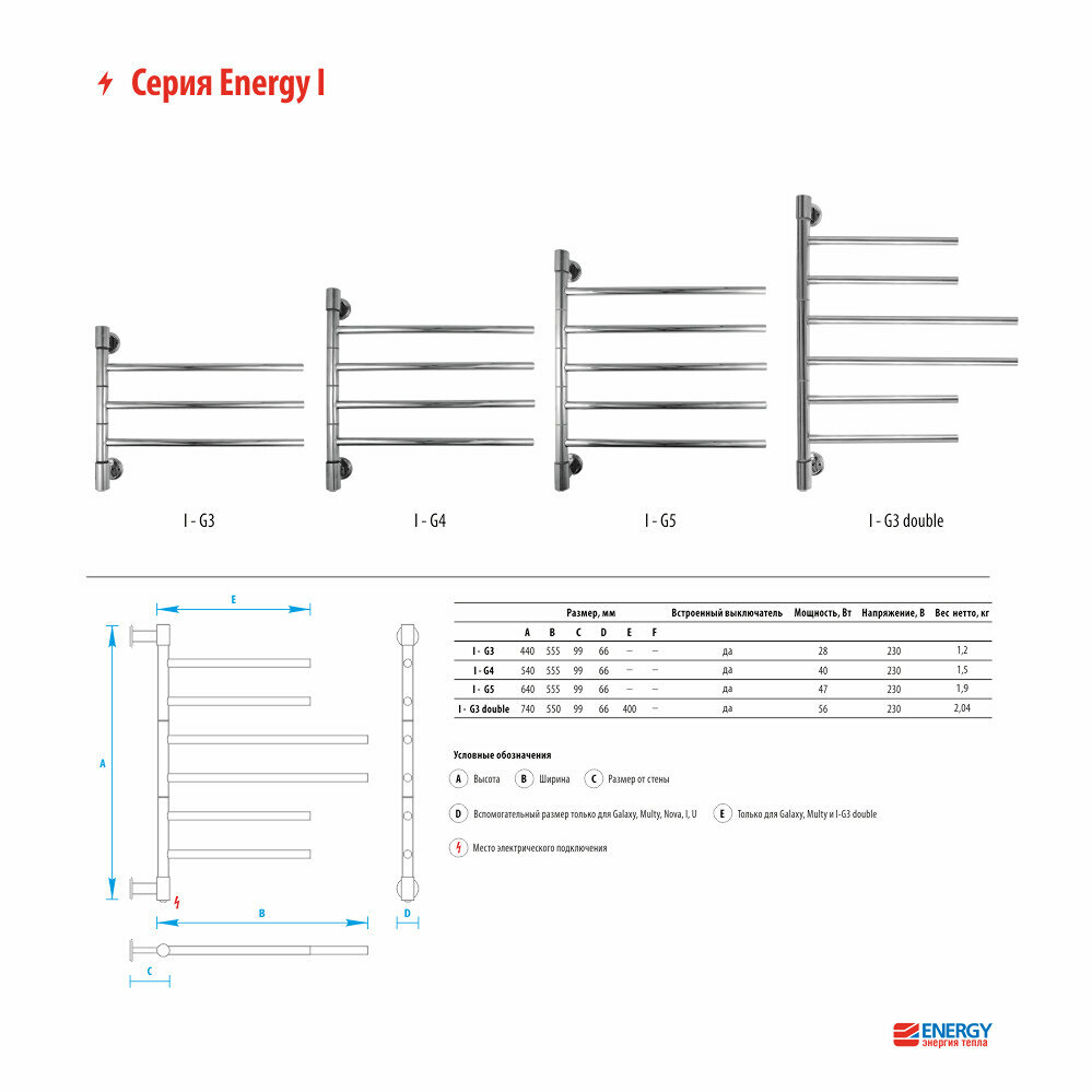 Электрический полотенцесушитель Energy I - G5 поворотный, цвет хром, скрытое/наружное подключение