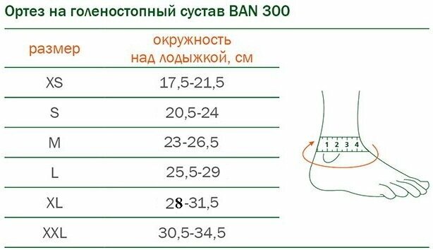 Бандаж ортопедический на голеностопный сустав BAN 300 ORTO, размер S
