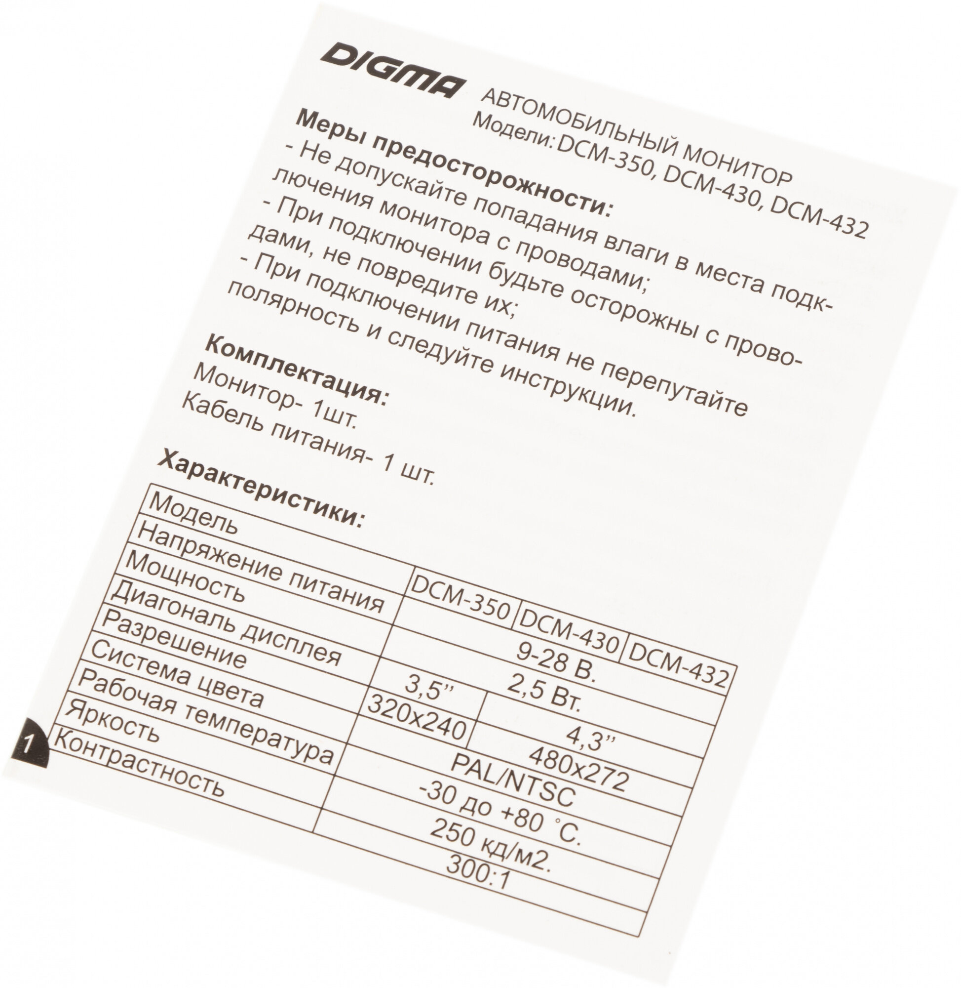 Автомобильный монитор Digma DCM-430 4.3" 16:9 480x272 2.5Вт, черный интересное: