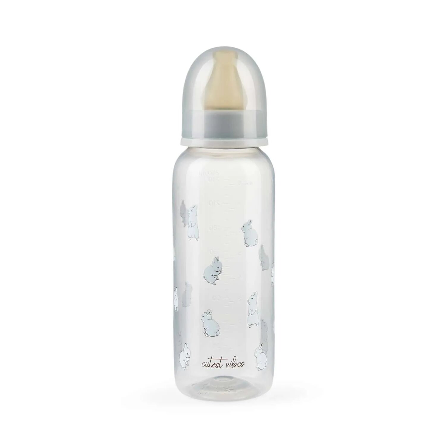 10018, Бутылочка для кормления с рождения Happy Baby, латексная соска, медленный поток, от 0 месяцев, 250мл, серая с кроликами