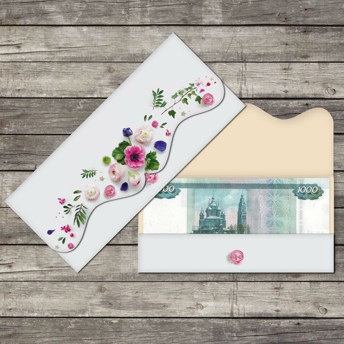 Купить Конверт для денег "Настоящие цветы" формовой, 17,5 х 8 см