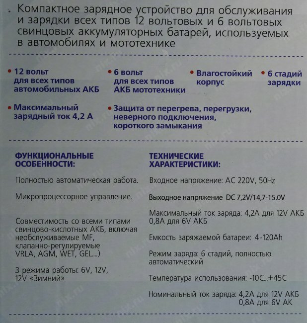 | Подходит для AGM/GEL аккумуляторов | есть |