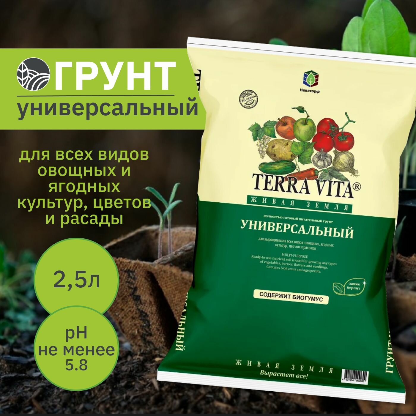 Универсальный грунт 2,5л живая земля