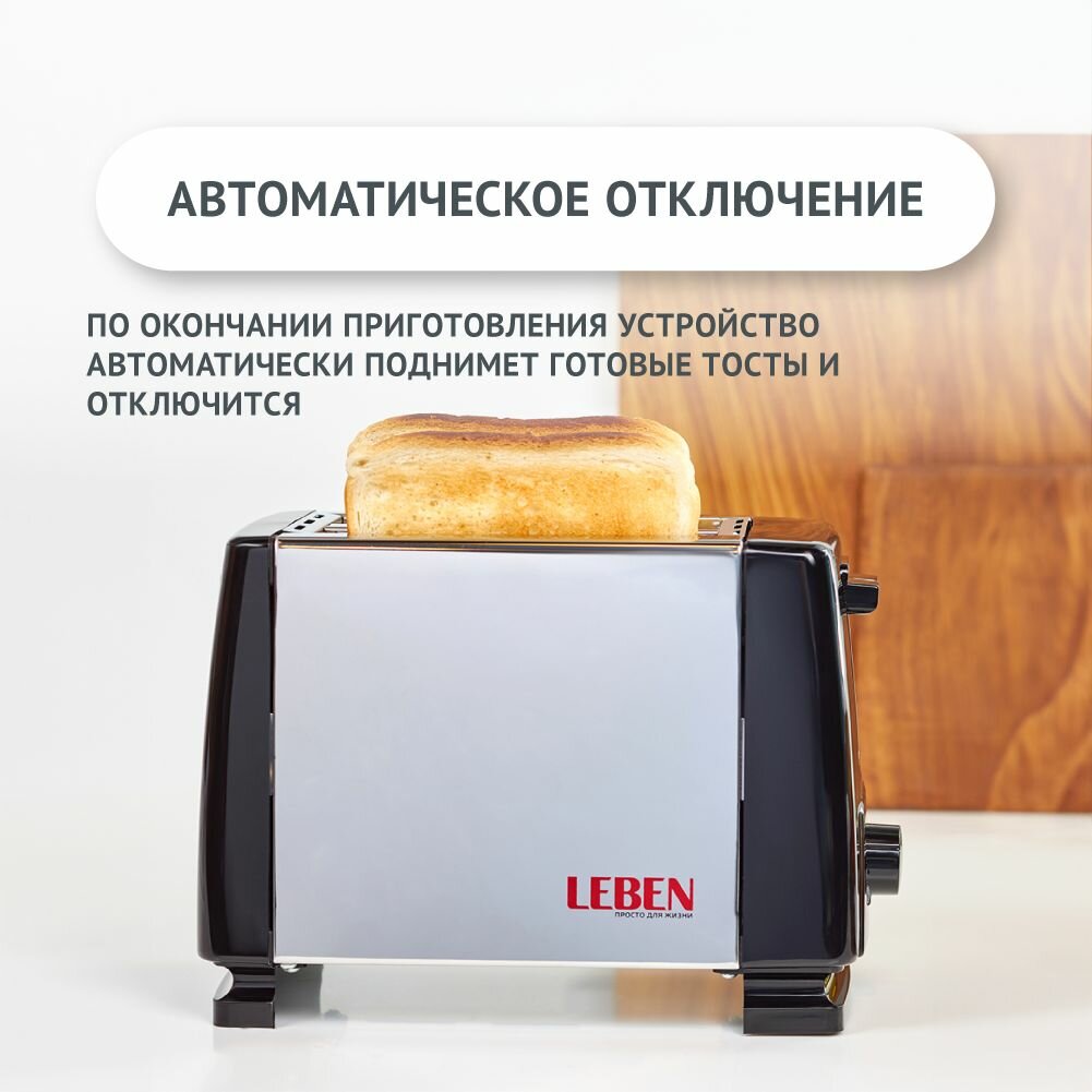 LEBEN Тостер 750Вт, 2 отдела, 6 степеней поджарки, арт.HJT-016S интересное: