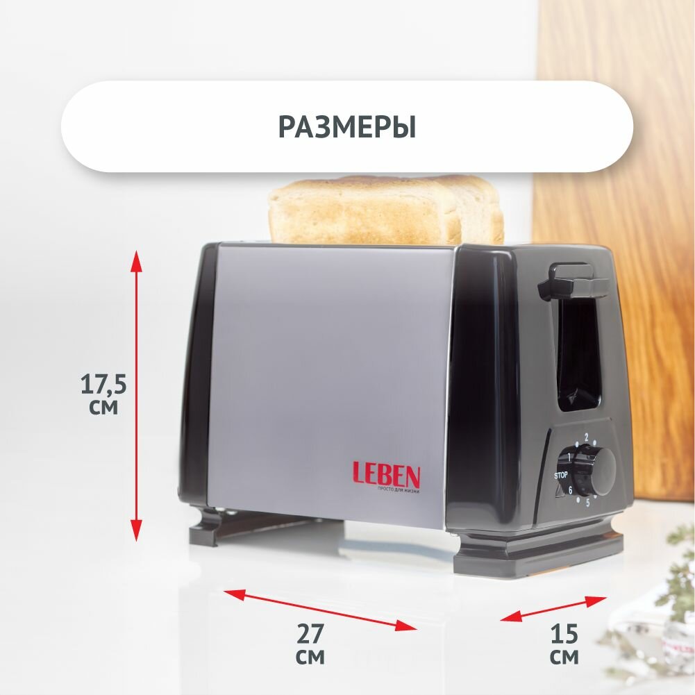 Тостер LEBEN 750 Вт, 2 отделения, 6 степеней поджарки