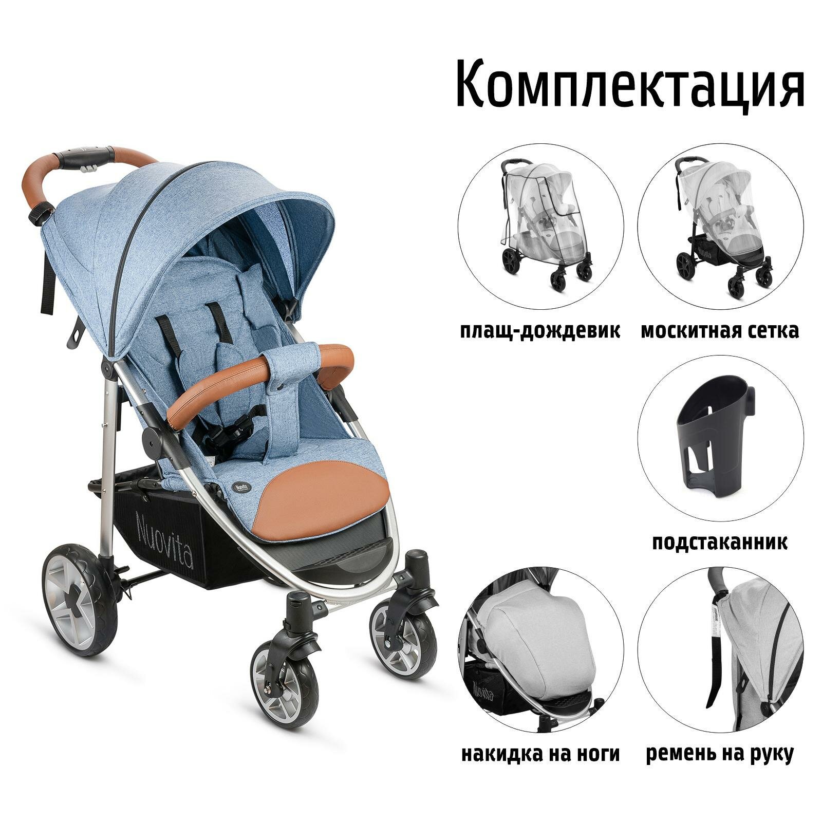 Прогулочная коляска Nuovita Corso (Denim, Argento/ Джинсовая, Серебристый)