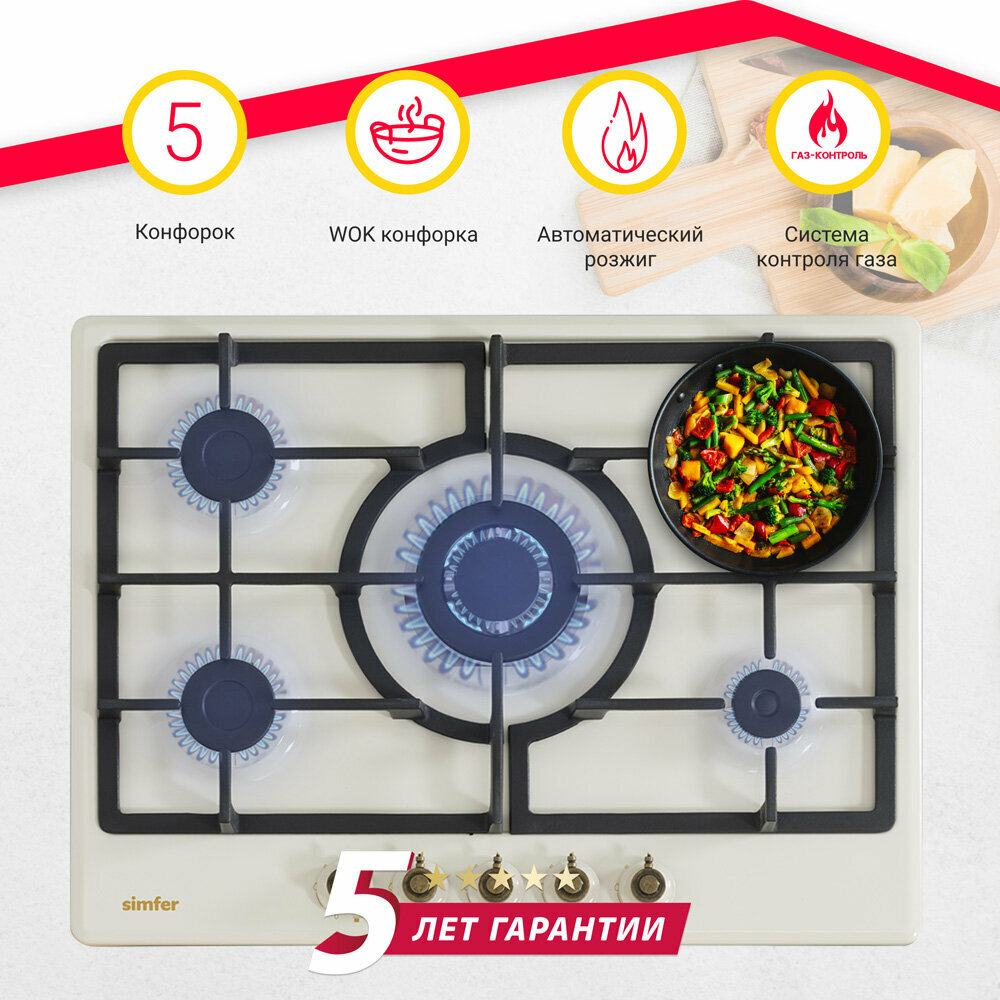 Газовая варочная панель Simfer H70W51O517 (WOK конфорка, с газконтролем) интересное: