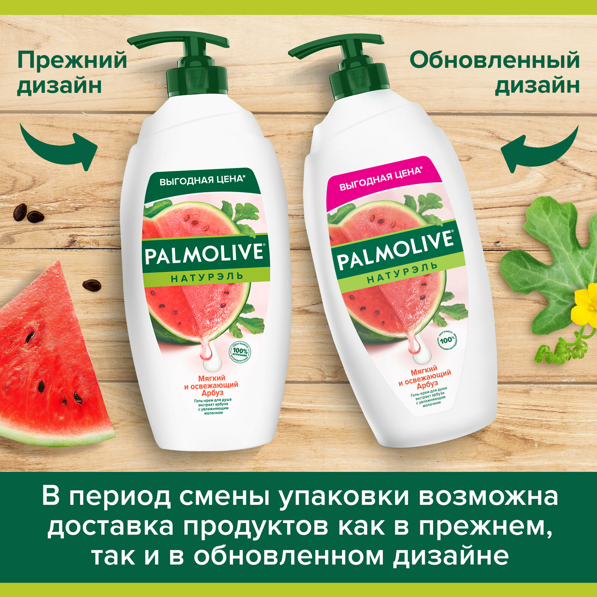 PALMOLIVE Натурэль Мягкий и Освежающий Арбуз гель-крем для душа с экстрактом арбуза и увлажняющим молочком, 750 мл
