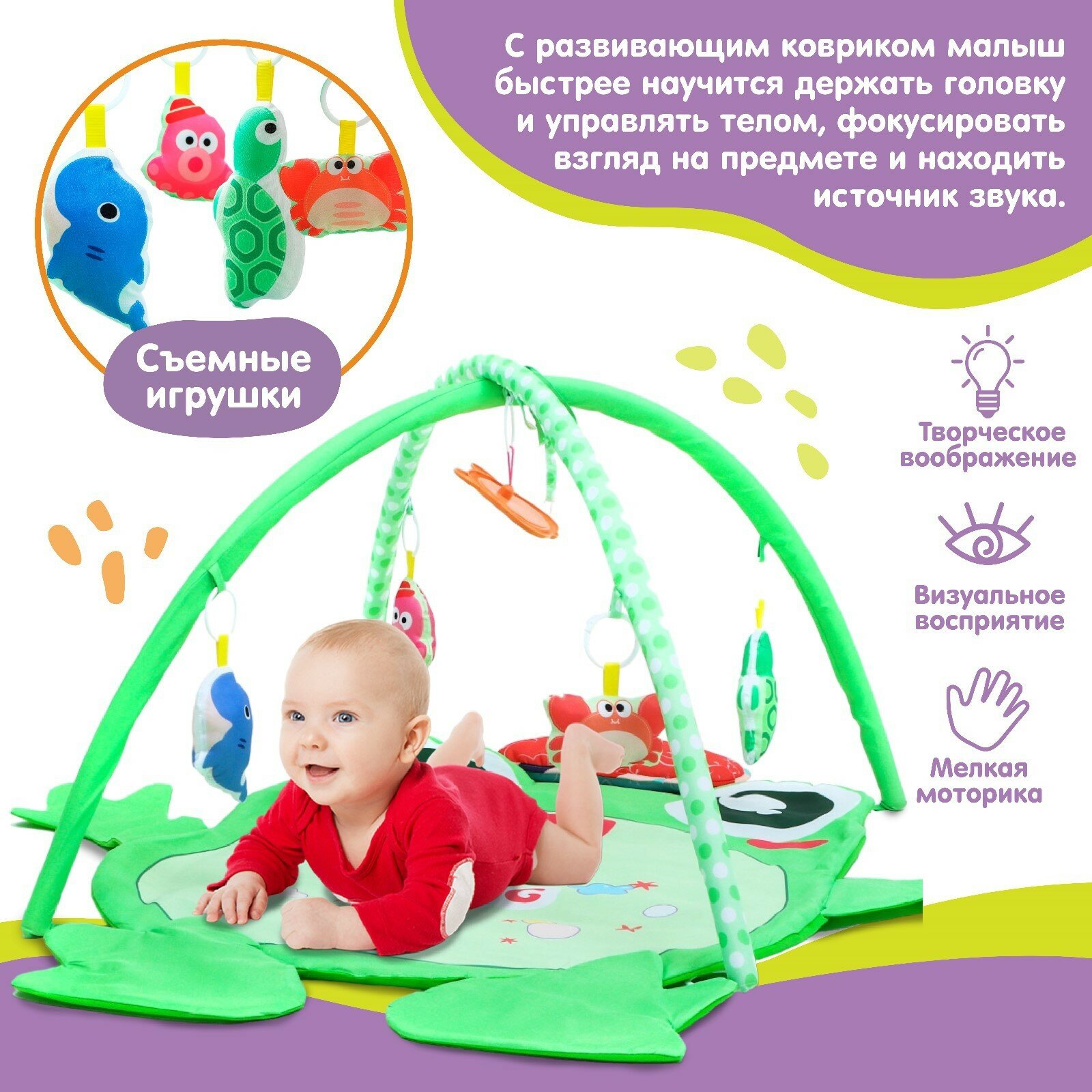 Развивающий коврик с дугами «Лягушенок», 78х69 см, интересное: