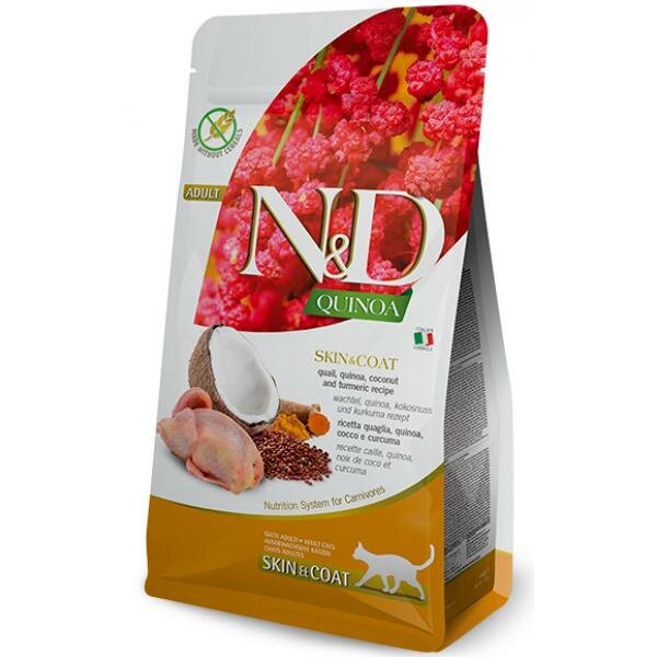 Farmina N&D Cat Quinoa Skin&Coat корм для кошек для кожи и шерсти Перепел и киноа, 1,5 кг.